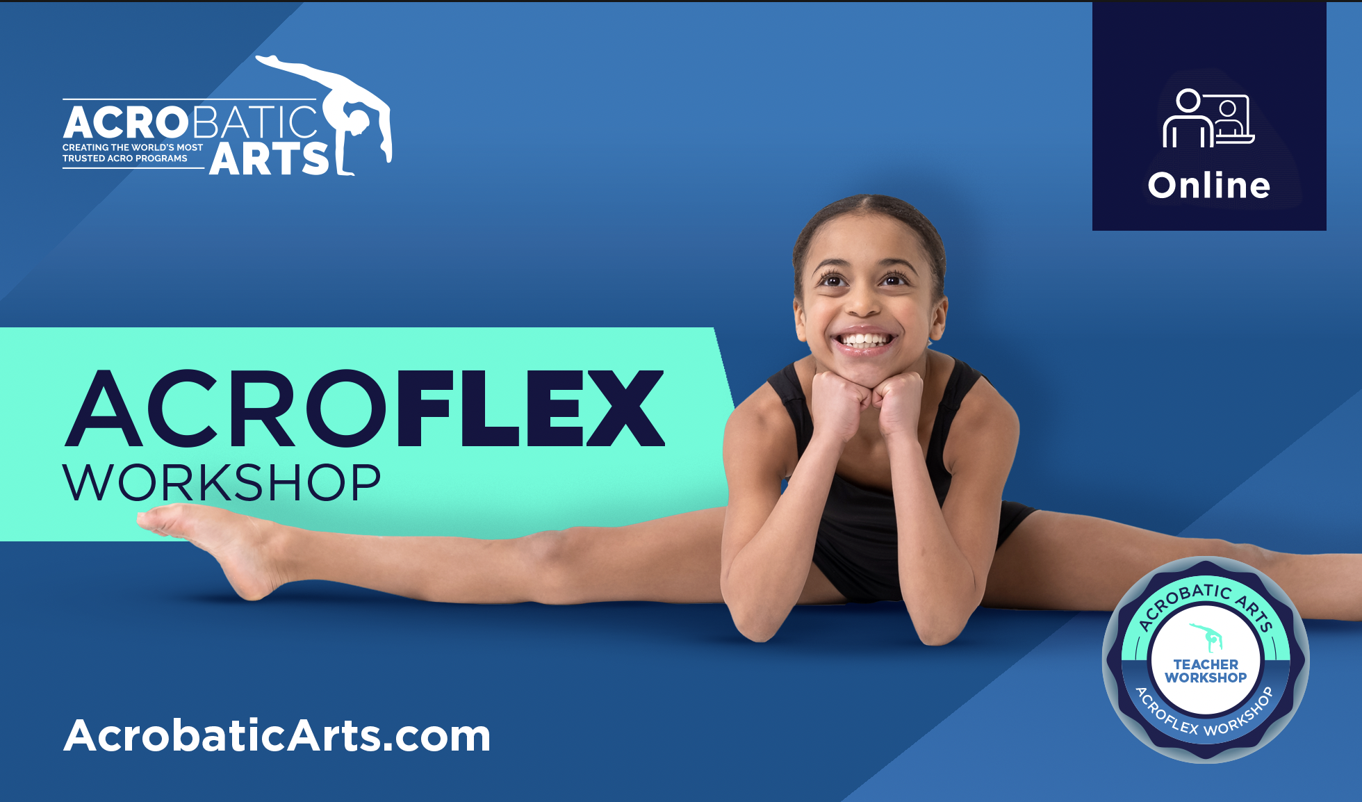 Experience a new approach to AcroDance flexibility and strength development with AcroFLEX, a live online, workshop designed for Acrobatic Arts Module 1 Certified Teachers*, or anyone looking to enhance the flexibility training component of their dance or acro classes.